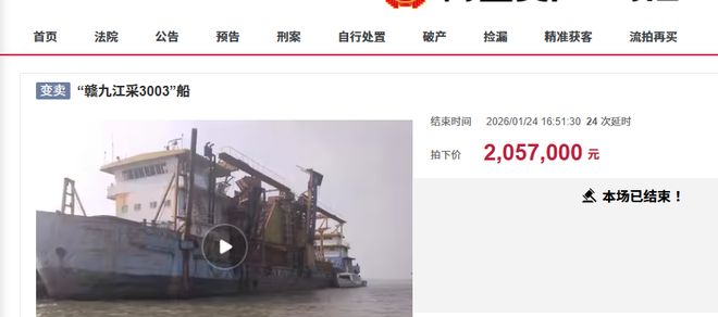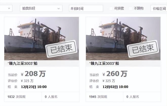 这艘采砂船去年12月份拍卖过两次,起拍价分别为260万元和208万元,但是都没有人报名竞拍而流拍了。